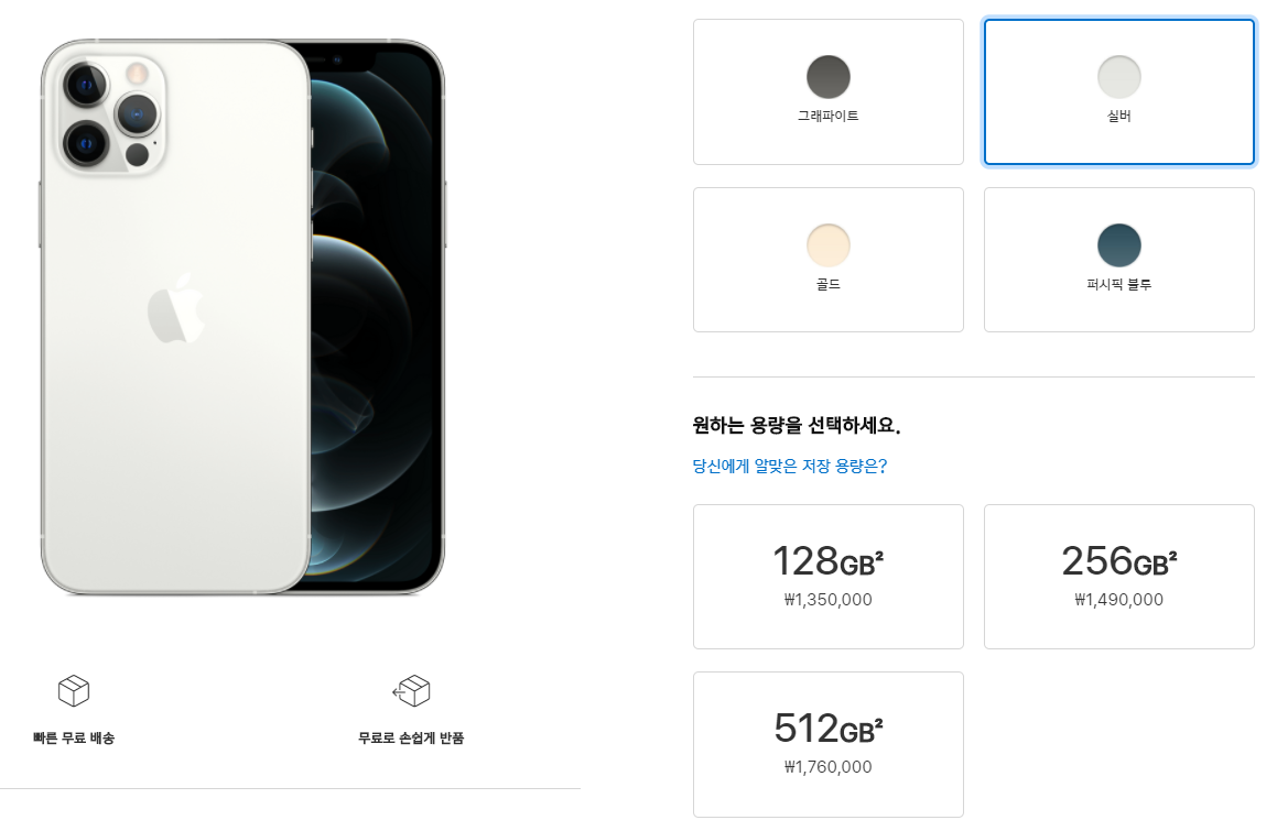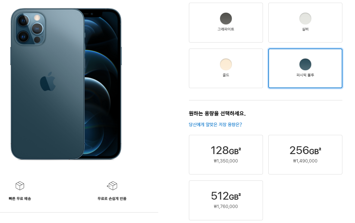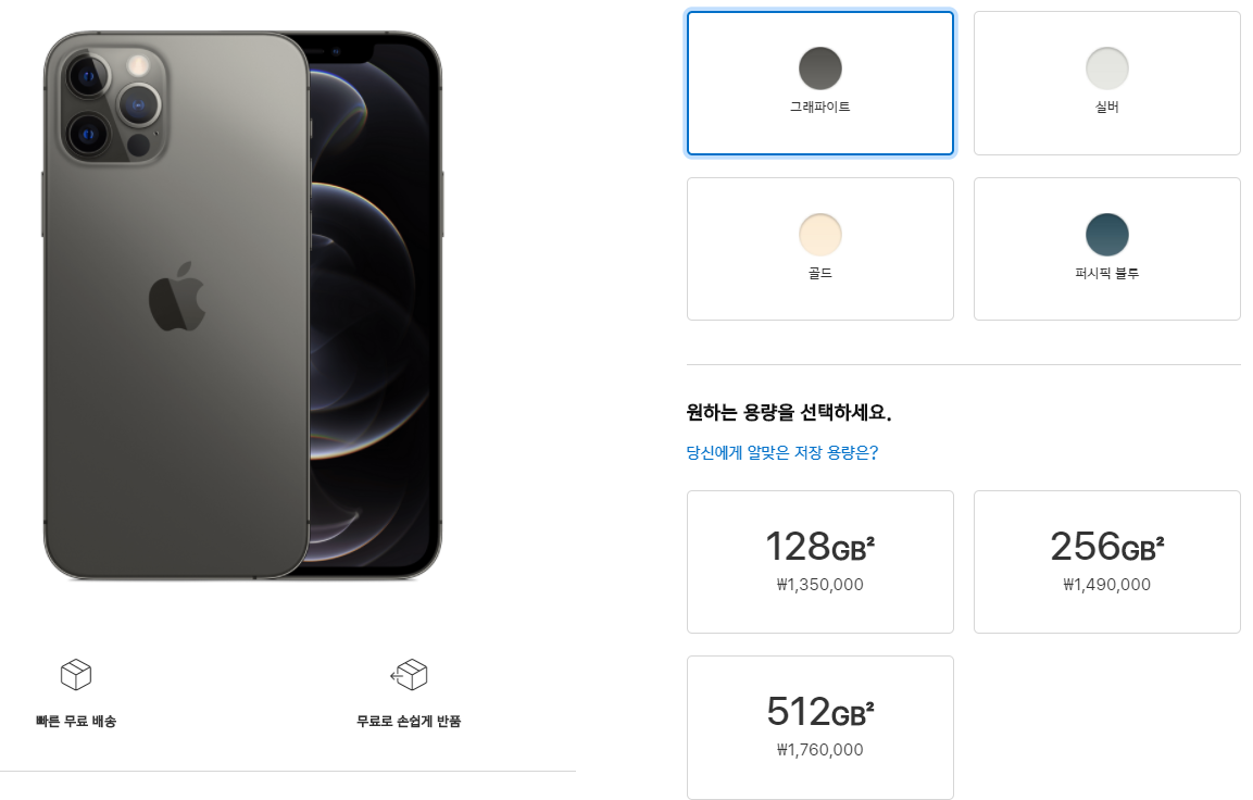 아이폰 12 pro 색상은 이렇게 4가지입니다.