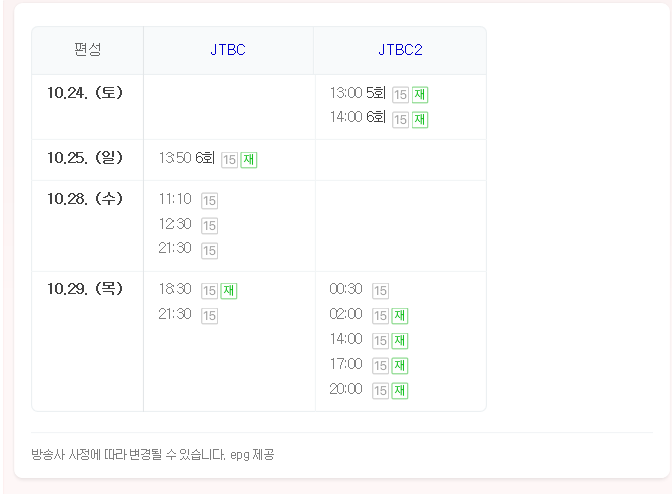편성 JTBC 2020.10.07. ~ (수, 목) 오후 09:30