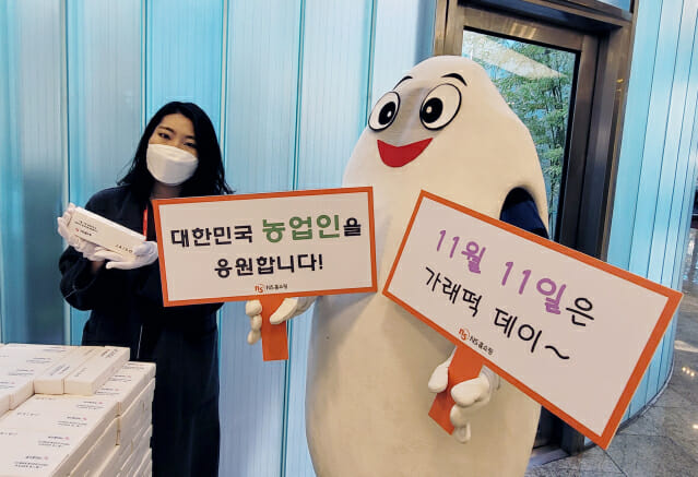 임직원과 NS홈쇼핑 본사를 방문한 협력사 및 내방객들은 11일은 의미하는 가래떡을 나누며 농업인의 날의 의미를 되새겼습니다. (마침 개수도 1111개로!)