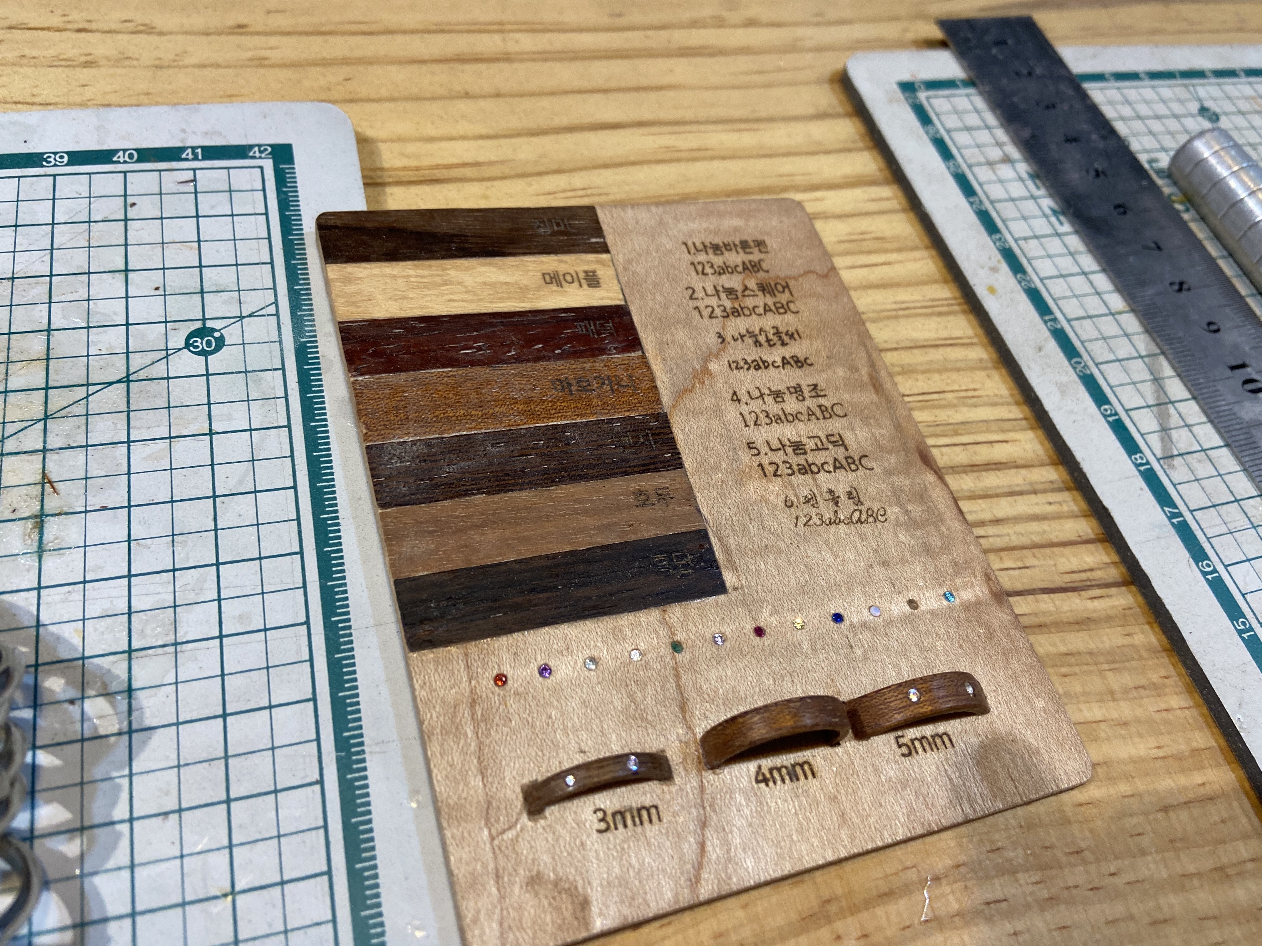내 손가락 사이즈까지 다 정하고 나면~ 이제 선택한 나무로 반지를 만들 시간 :)