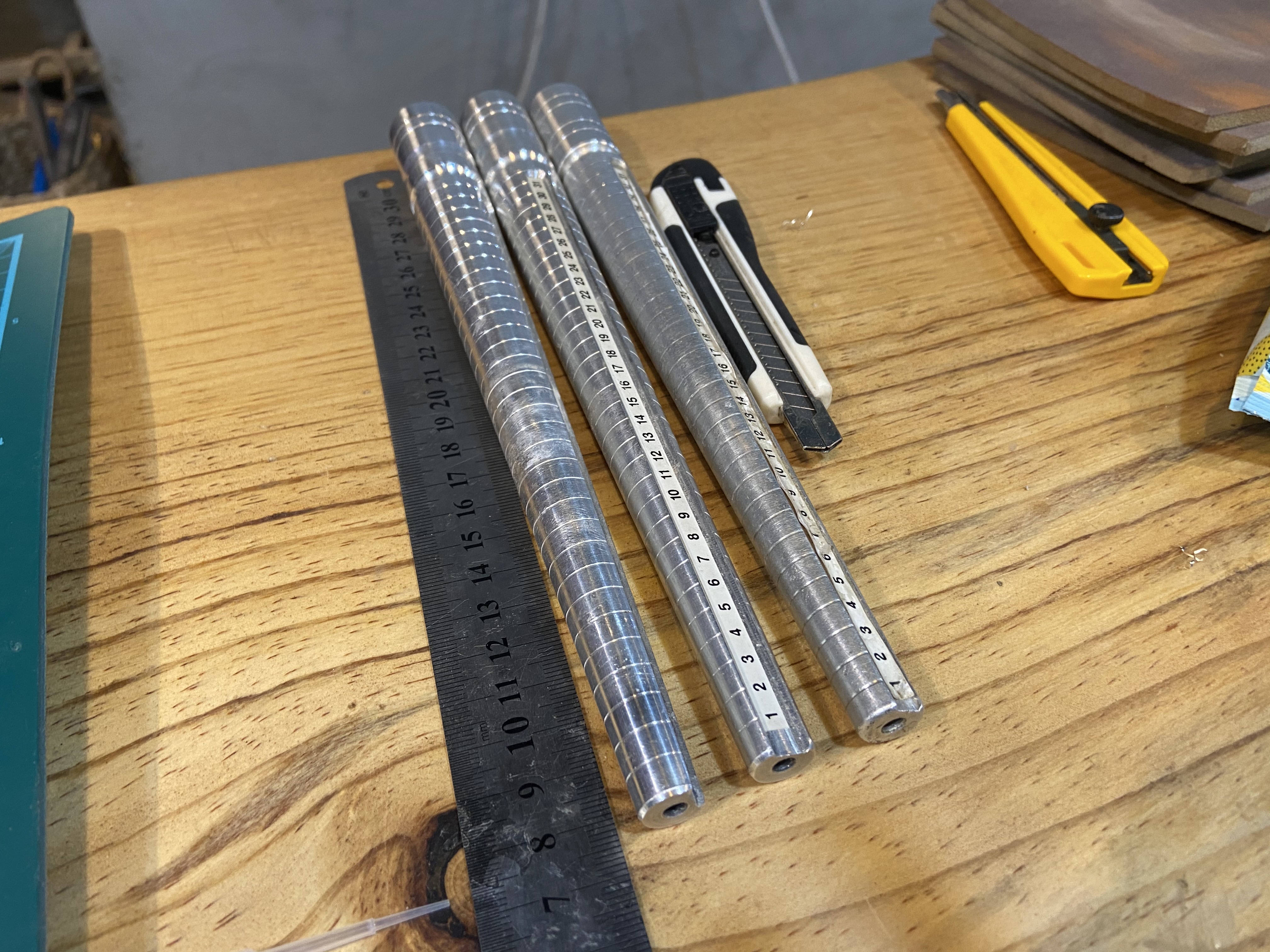 위 사진에 보이는 은색 봉에 내 반지 사이즈를 찾아서 나무 껍질로 돌돌 말아줍니다.