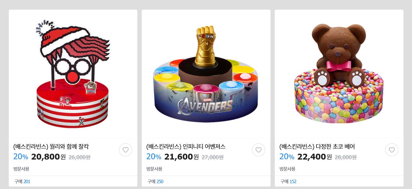 바로 G마켓에서 아이스크림 케이크를 20% 할인된 금액에 판매하더라고요.