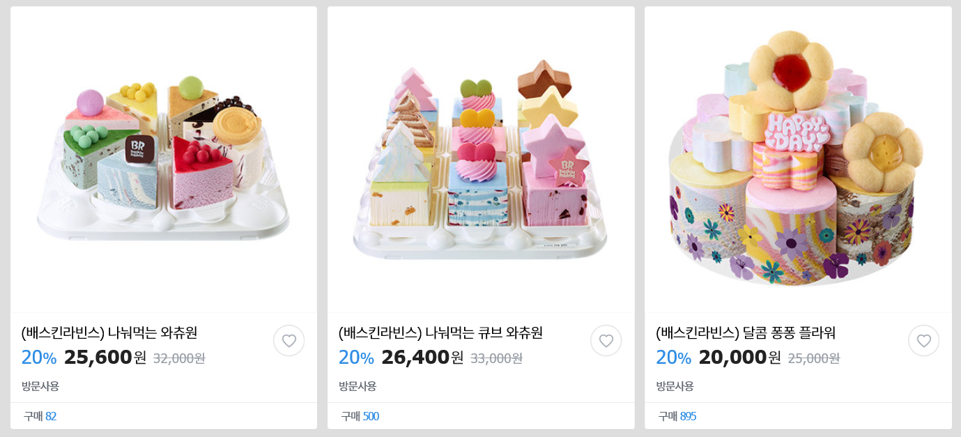 위의 케이크들이 전부 20% 할인된 가격에 판매한다는 사실!