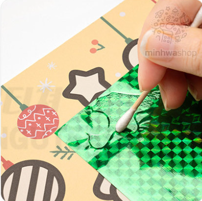 풀을 이용해도 되지만! 포일아트 뒷면도 스티커로 되어있어서 뗴어낼 수 있어요.
